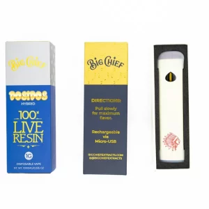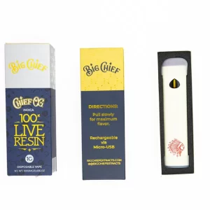 Experience the authentic essence of cannabis on-the-go with Big Chief’s Live Resin Disposable Vapes. These all-in-one Big Chief disposables are meticulously crafted to preserve the natural terpenes found in cannabis, extracted from freshly harvested, flash-frozen plants. Immerse yourself in the original flavor profiles and effects of each strain, ensuring a genuine flower high wherever you may be. Discover the ultimate convenience without compromising on the true essence of your favorite strains with Big Chief’s Live Resin Disposable Vapes. *Note: This is a disposable cart/vape pen with a built-in battery – all in one.