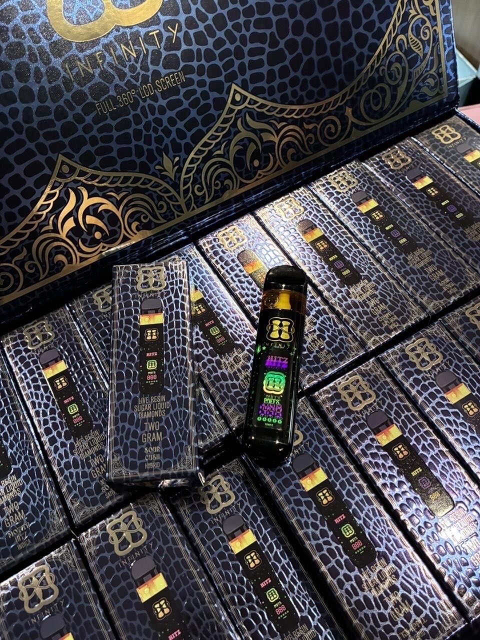 Elevate your vaping experience with the Hitz 2G Blue Edition Disposable, representing the next level in cannabis vaporizer design. With 2 full grams of live resin and liquid diamonds, a groundbreaking 360° Blue Screen, and advanced Gen 8 ceramic coil heating, this device offers unrivaled potency, visual appeal, and flavor preservation—all in a portable, ready-to-use package.